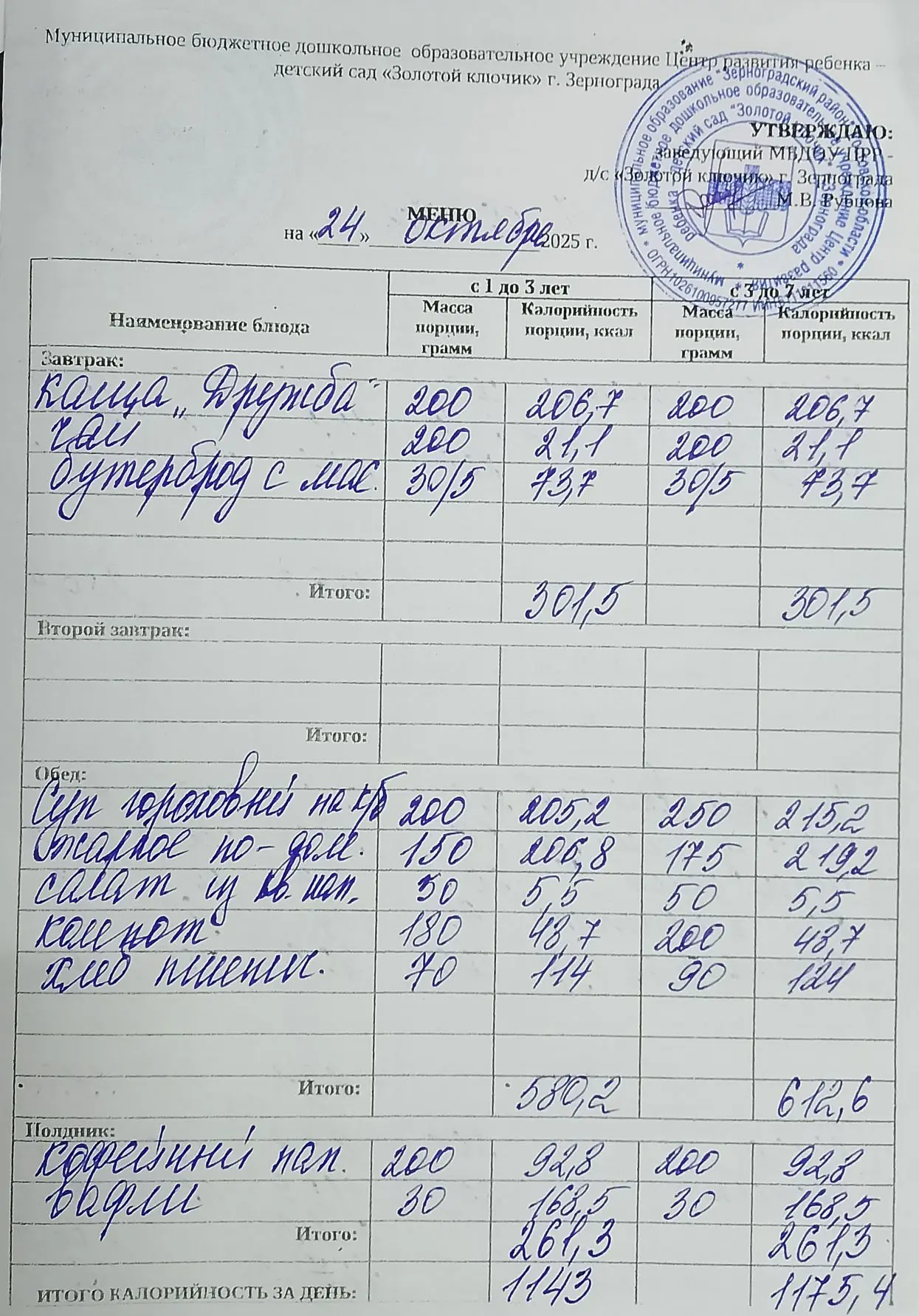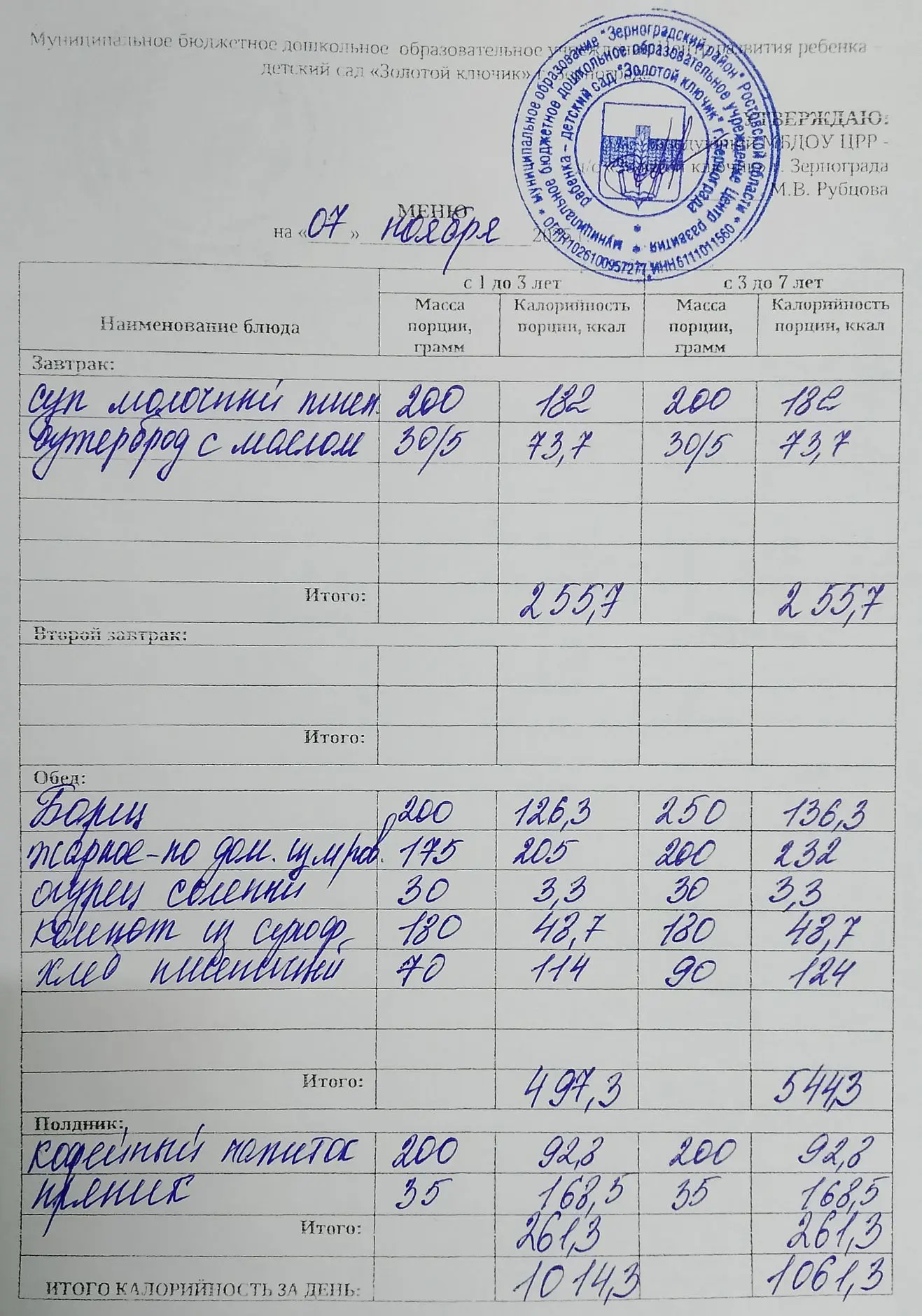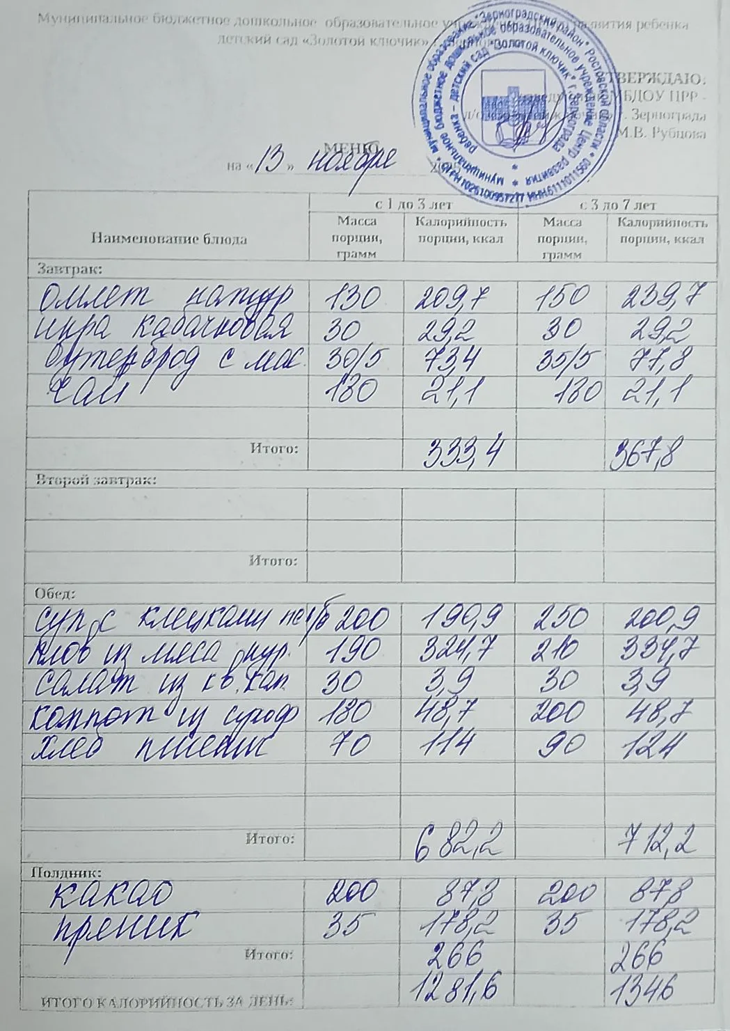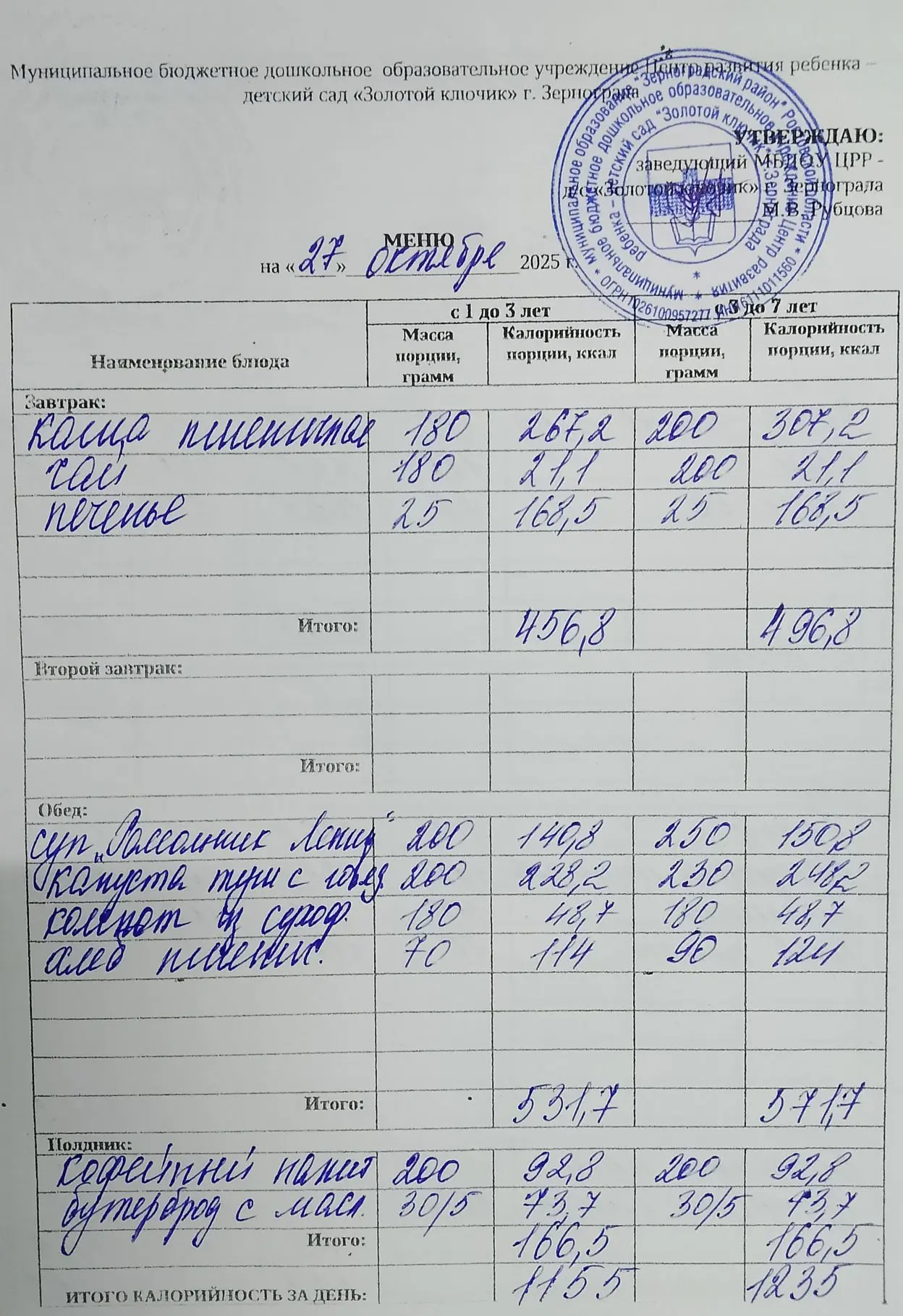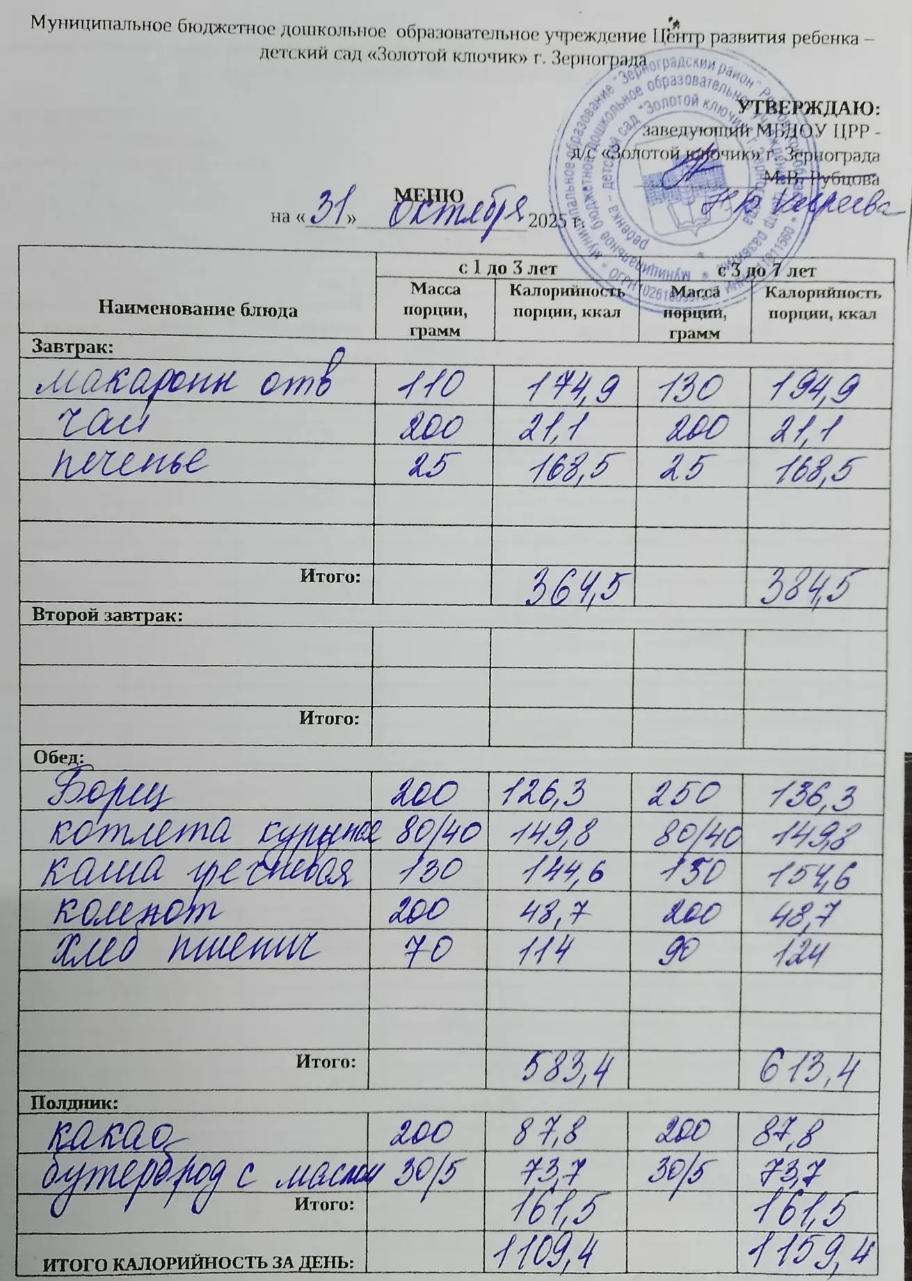 Меню ежедневного горячего питания